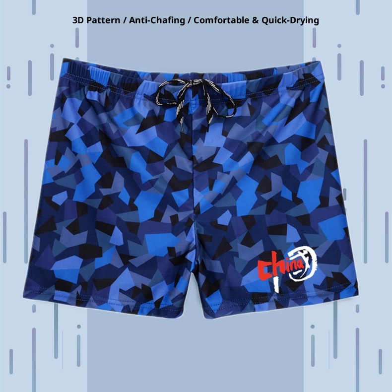 001 National Trend New Adult Plus Size Printed Men's Swimwear Boxer Hot Spring Quick-Dry Professional Swimming Trunks