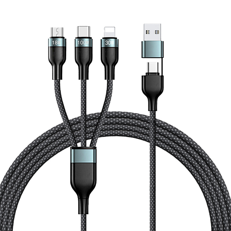100W Super One-to-Two Data One-to-Four Universal Multi-Functional Fast Charging Cable For Phones And Laptops