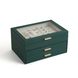 1pc CASEGRACE Large 26.42cm Transparent Flip-Top Jewelry Organizer Box - Double Drawer Leather Storage