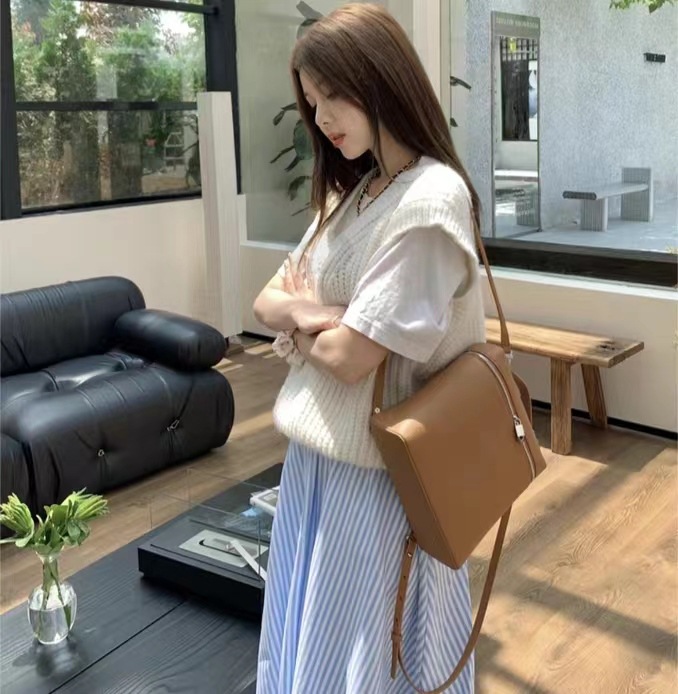 2023 Korean version lunch box bag Instagram style backpack, women's soft leather large capacity, high-end feeling, minimalist college style backpack