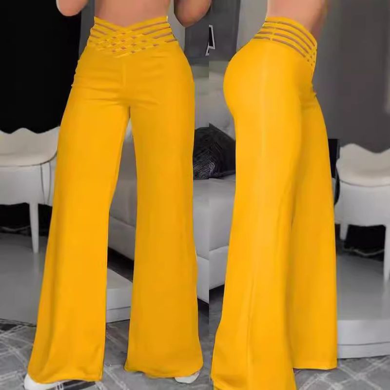 2024 women's hollow cross waisted pants with commuting style, micro flared pants, high waist, casual wide legs