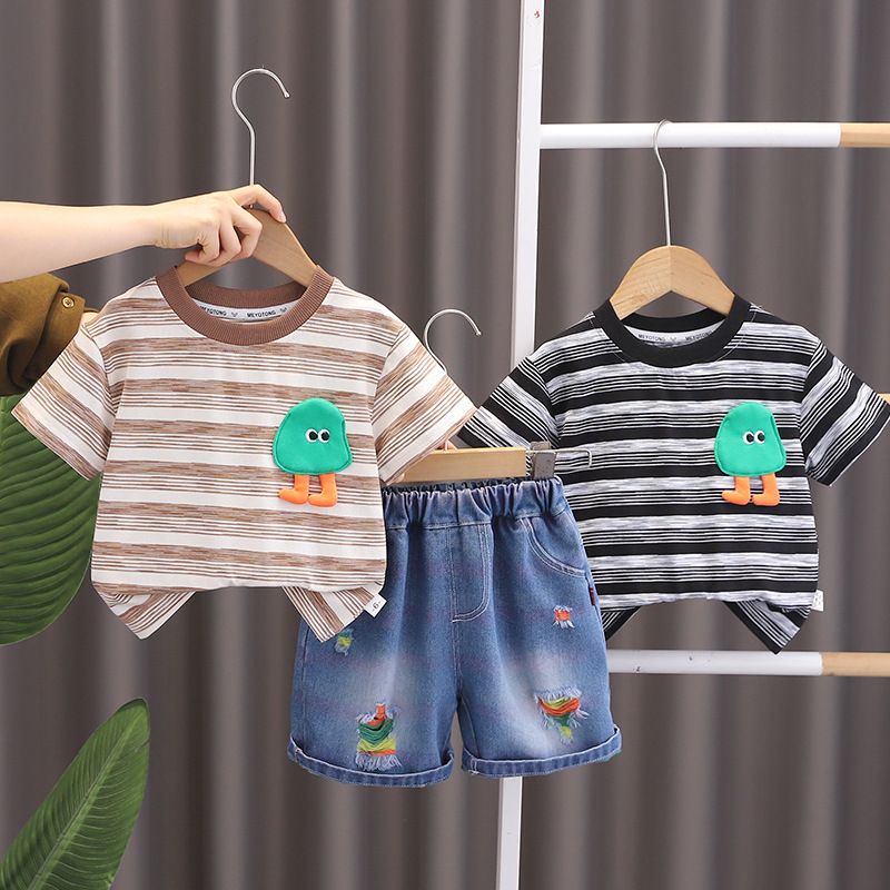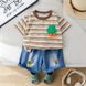 2024. aasta suvine uus poiste ja tüdrukute moodne triibuline lühikeste varrukatega kaheosaline beebikauboi lühikeste pükste komplekt