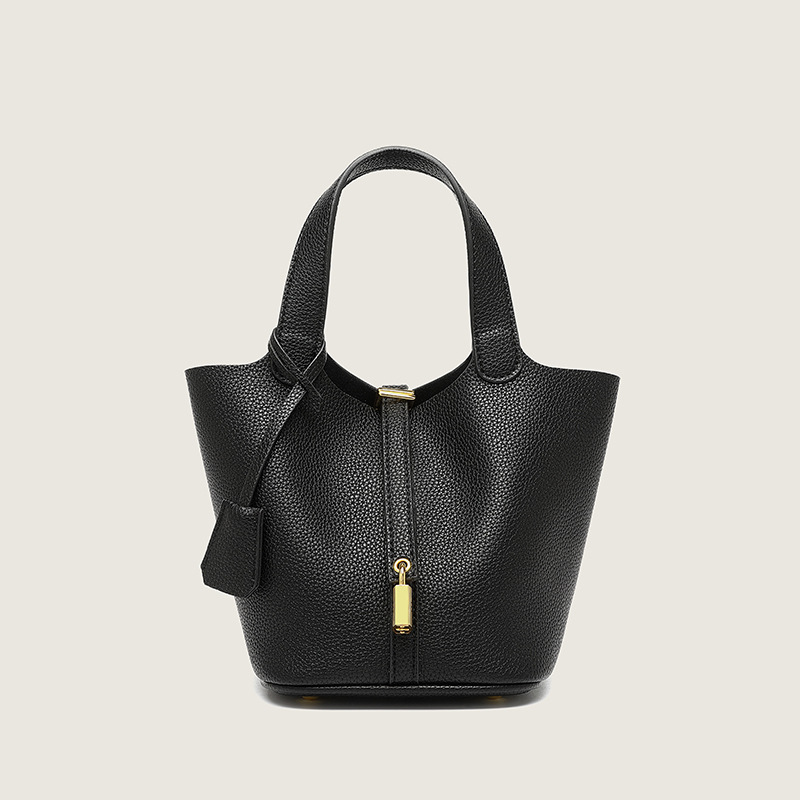 2024 New Vegetable Basket Wind Bag Soft Skin Women's Large Capacity Litchi Pattern Water Bucket Bag Handbag