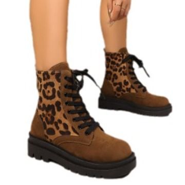 2024 Autumn And Winter New Plus Size Lace Up Martin Thick Sole Leopard Print Color Blocking Versatile Temperament
