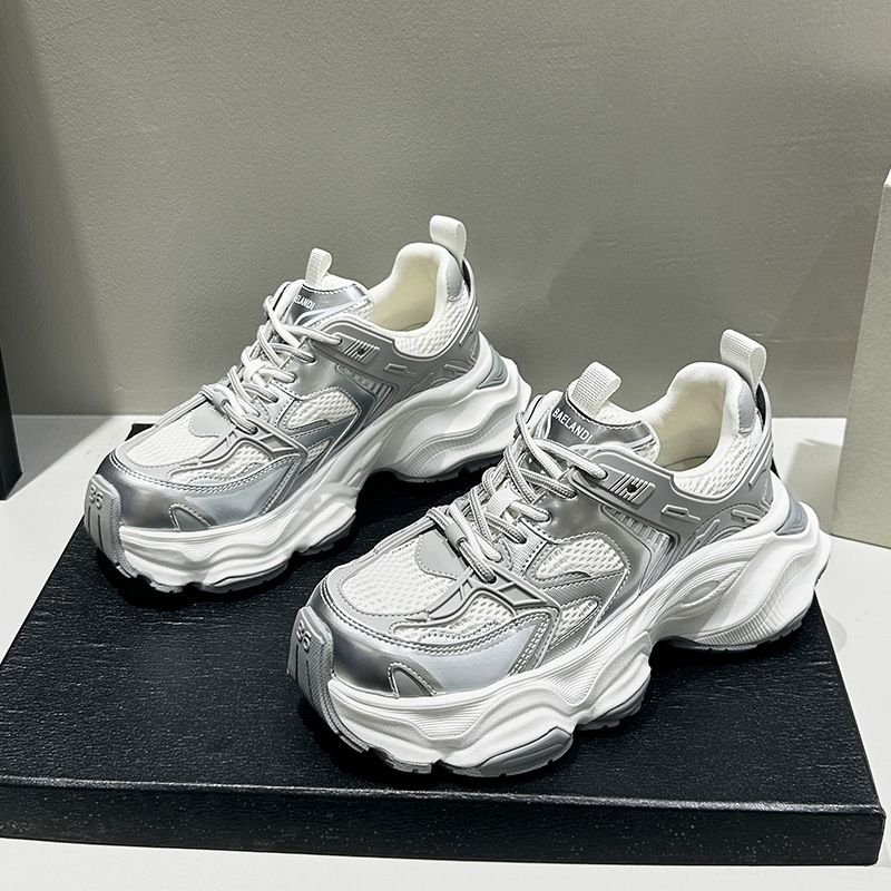 2024 Spring New Dad Women's Mesh Breathable Casual Versatile Trendy Running Height Increasing Sports Shoes