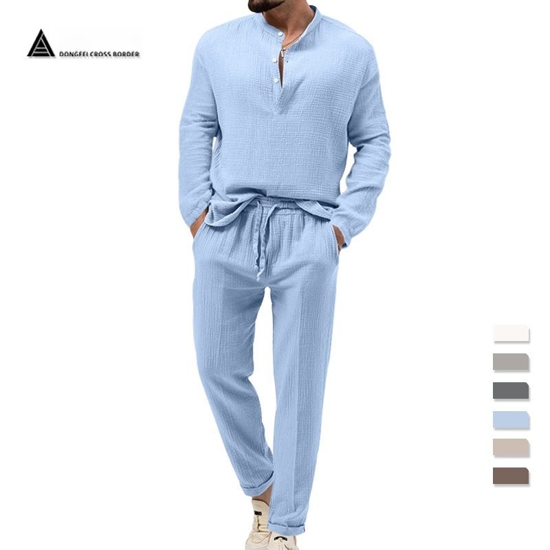 2025. aasta kevad- ja sügismeeste ühevärviline vabaaja T-särk, varrukatega särk, pikad püksid