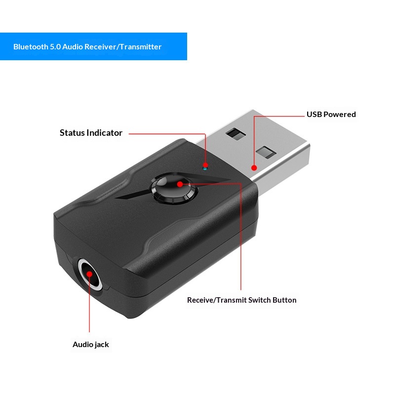 5.3 Transmitter Stereo Receiver USB Bluetooth Dual Output Computer Audio Adapter