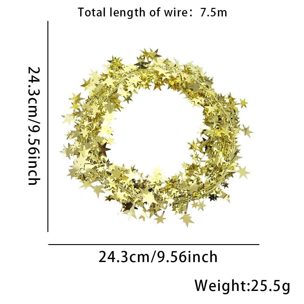 Unique Christmas Decor:This 7.5-meter star iron wire Christmas tree decoration is unique and eye-catching, adding a festive touch to your holiday decorations. Versatile Accessory:As a versatile accessory, it can be used as a Christmas tree decoration or as a stand-alone decoration for your home or office. Quality Material:Made from high-quality iron wire, this decoration is durable and long-lasting, ensuring it can withstand the rigors of repeated use. Easy to Install:The decoration is easy to install, making it a convenient addition to your Christmas decorations. Festive Design:With its festive design, this decoration is perfect for celebrating Christmas and other holiday occasions. Compact Packaging:The product comes in compact packaging, making it easy to store and transport.