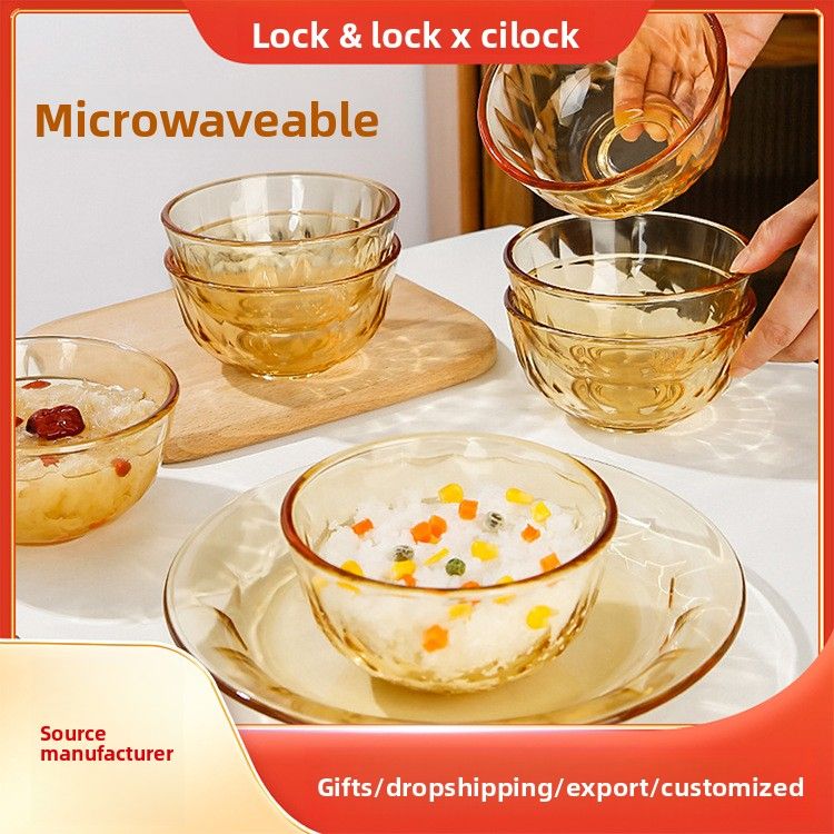 Amber Glass Bowl Microwave Safe High Temperature Resistant Household Noodle Bowl Salad Bowl Rice Bowl Soup Bowl Tableware Set