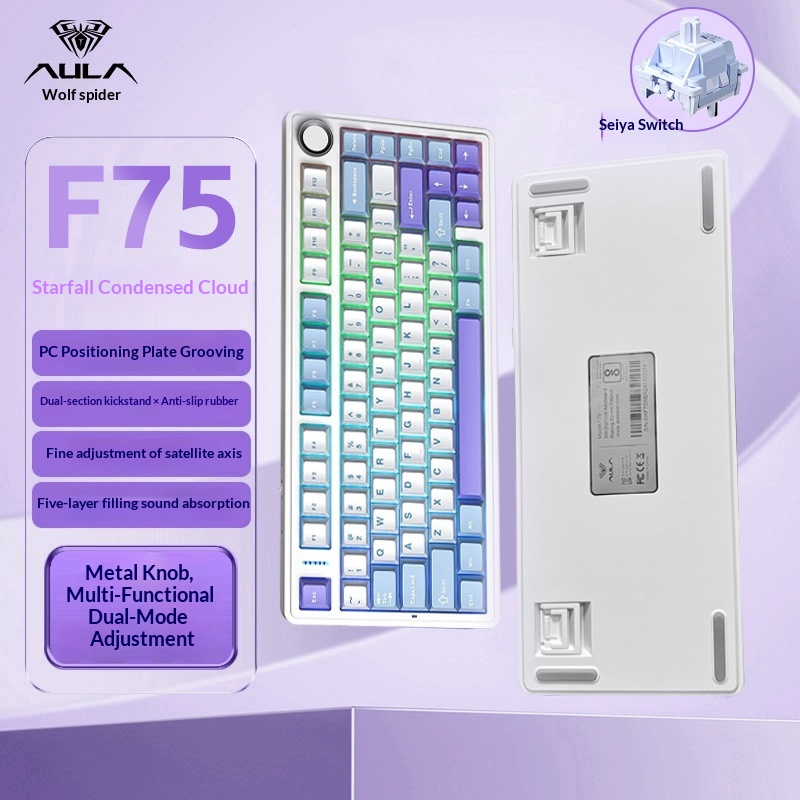 AULA Wolf Spider F75 Wireless Three-Mode Customized Mechanical Keyboard Gaming Gasket Structure Hot-Swappable Bluetooth