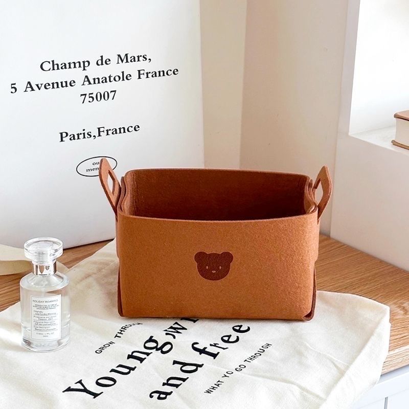 [Unshipped Instant Refund] Bear Felt Storage Basket Foldable Toy Storage Bin Dirty Laundry Basket Desktop Organizer Box Cosmetics Snacks 2025