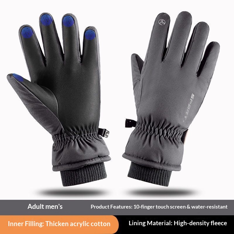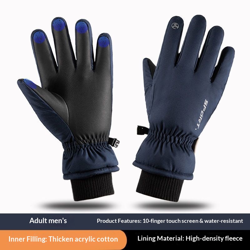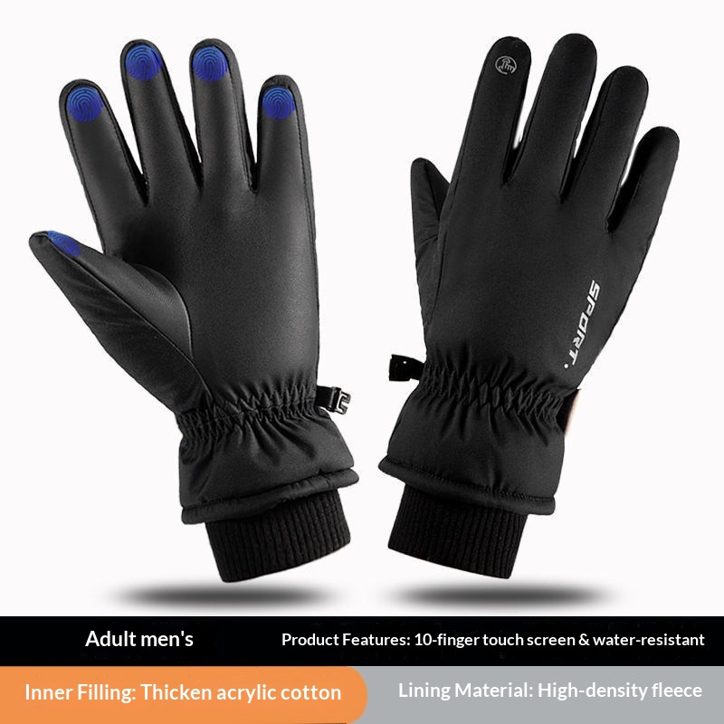 boy Boy Boy Down Cotton Winter Warm Motorcycle Riding Waterproof Cold-proof Fleece-lined Thickened Outdoor Ski Gloves Men
