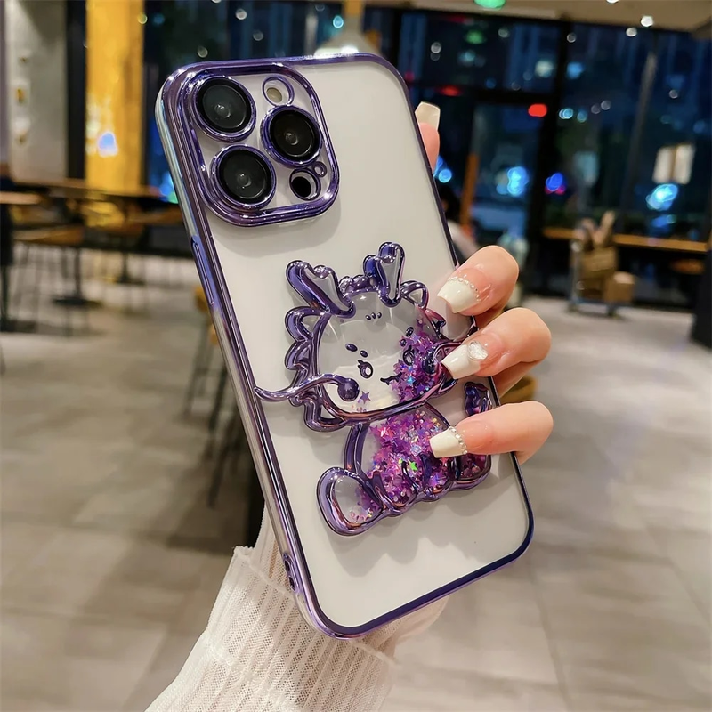Cartoon Glitter Quicksand Case for iPhone 15 14 13 Pro Max Gradient Plating Camera Film Soft Cover for iPhone 12 11 Transparent