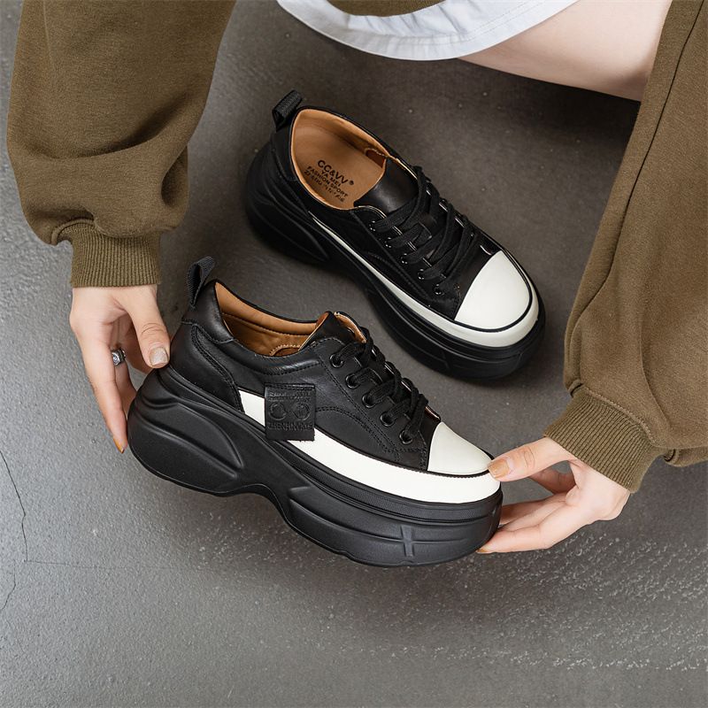 CCVV 2023 sügis-talv uus toode, paksu tallaga valged loomanahast naised, kerged ja lühikesed kõrgust suurendavad kingad,