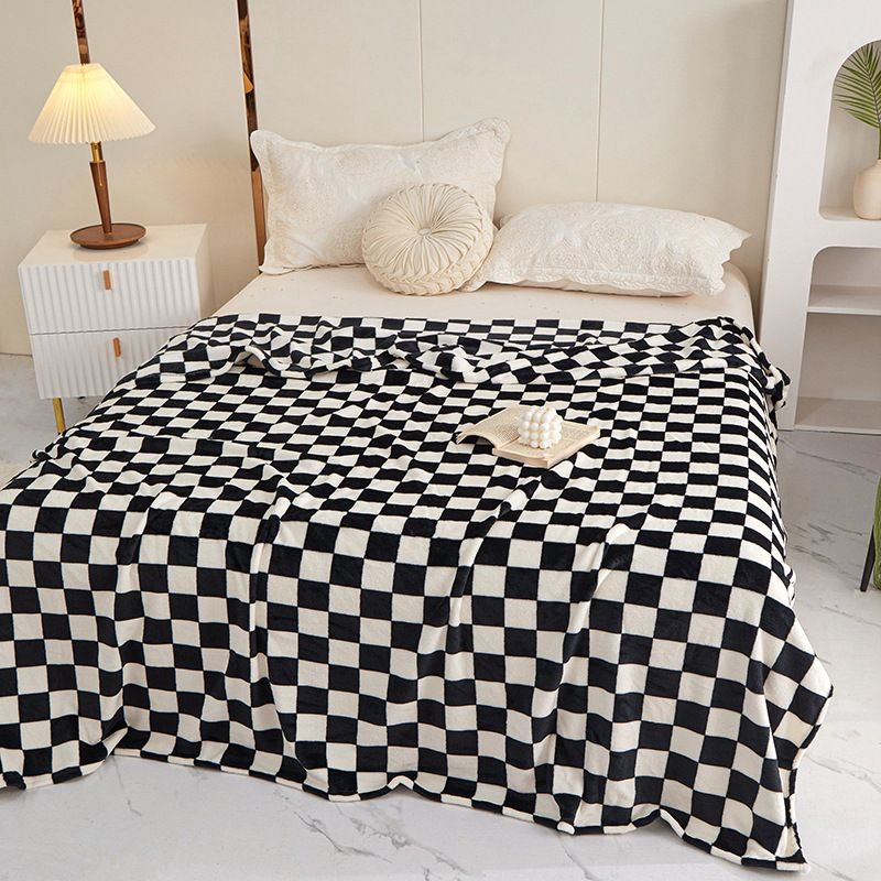 Checkerboard Pattern Flannel Throw Blanket | Soft Coral Fleece Office Nap Blanket With Air Conditioning Box Gift Set