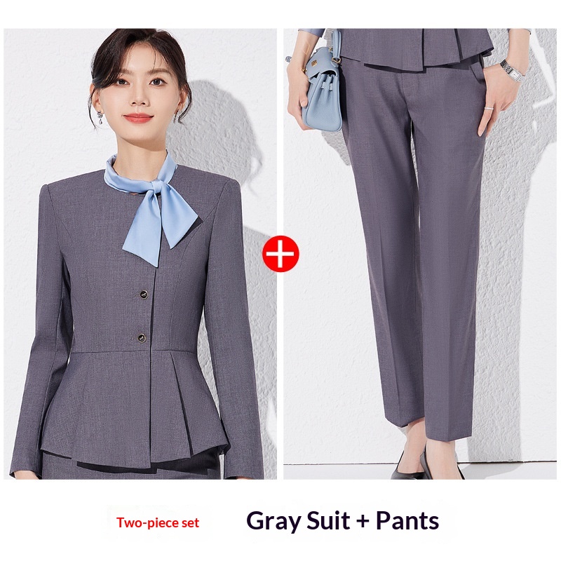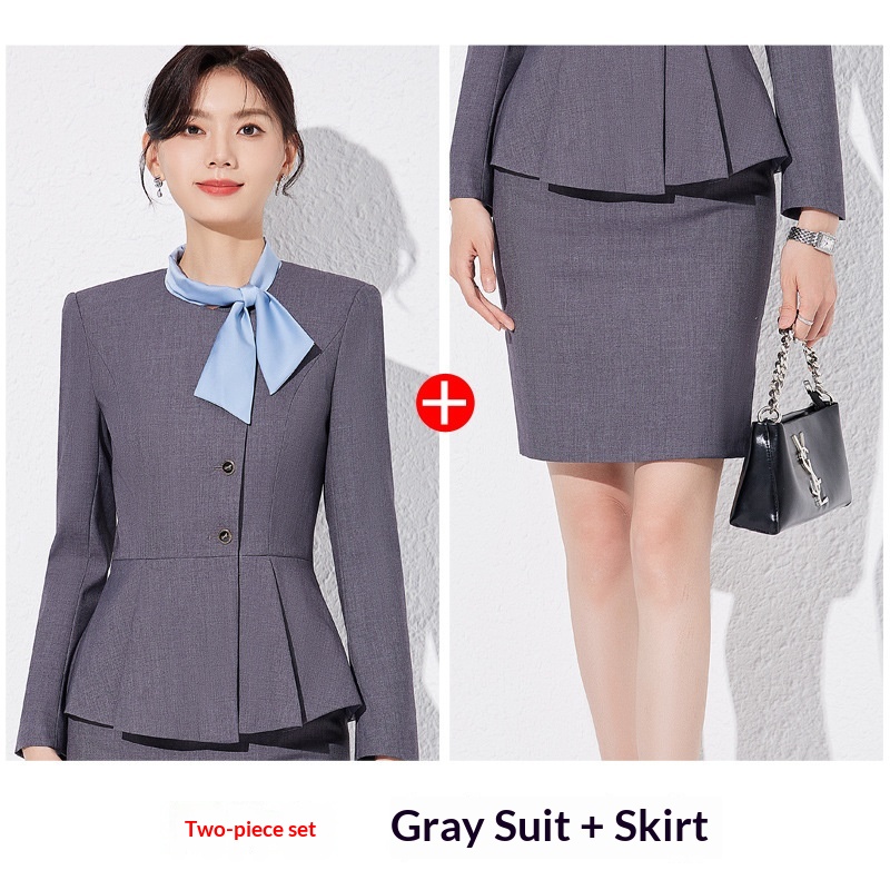 Item Number:25YX68072,Fabric Name:Polyester,Main fabric material composition 2:Spandex,Year/Season of Release:Autumn 2024,Main fabric composition:Polyester Fiber,Color:Gray Single Suit, Dark Blue Single Suit, Gray Suit + Pants, Dark Blue Suit + Pants, Gray Suit + Skirt, Dark Blue Suit + Skirt, Gray Suit + Pants + Skirt, Dark Blue Suit + Pants + Skirt, Dark Blue Pants, Gray Pants, Dark Blue Skirt, Gray Skirt,Size:S,M,L,XL,2XL,3XL,4XL,Brand:Fairy,The length of the pants:Long Pants,Sleeve Length:Long Sleeve,Main fabric ingredient content:90% contains - 95% does not contain,Cross-border Style Type:Elegant and graceful,Sleeve Style:Regular Sleeve,Is it cross-border sourcing?:yes,Main fabric component 2 content:Below 30%,Main Downstream Sales Regions 1:Southeast Asia,Main downstream sales regions 2:European and American