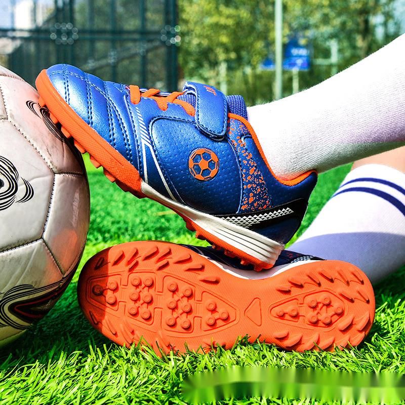 Children's Soccer With Velcro, Cleats Artificial Grass, No-Tie Athletic Shoes For Kids And Students