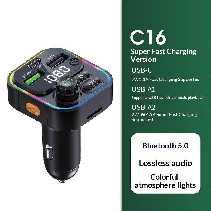 Cross-border New Bluetooth MP3 Super Fast Charging Multi-functional Car Player Charger FM Transmitter