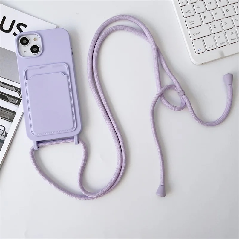 Crossbody Lanyard Card Bag Phone Case For iPhone 15 14 13 12 11 Pro Max X XS XR SE 2 3 7 8 Plus Silicone Soft TPU Back Cover