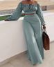 women's clothing casual solid color leisure vacation solid color slit off-shoulder long-sleeved two-piece set