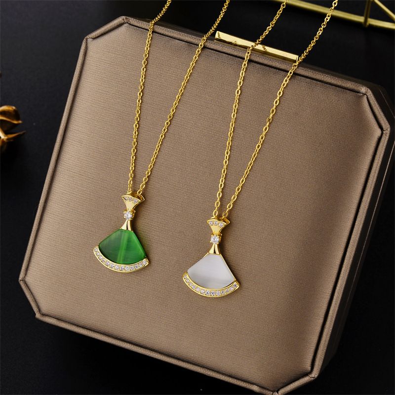 Diamond embellished small skirt necklace for women's light luxury fan shaped versatile Beimu short collarbone chain mesh red fashion pendant trend