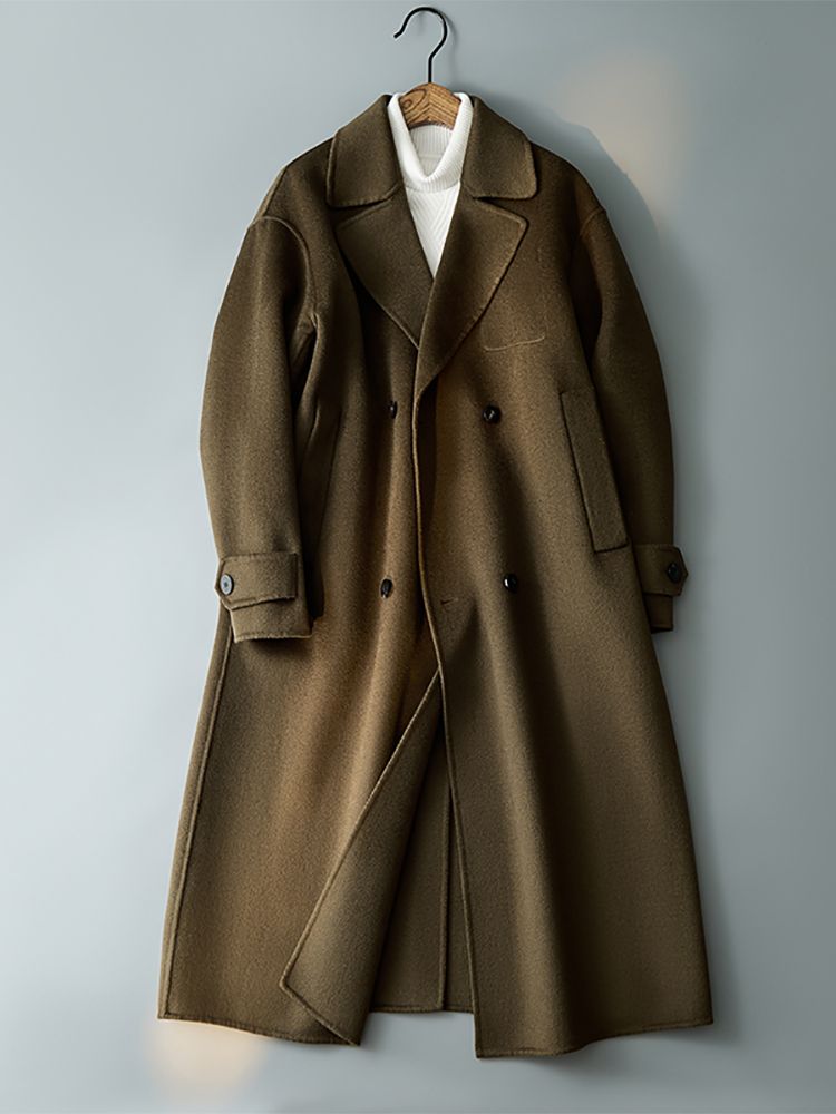 Double-Sided Woolen Mid-Length Coat for Men, Korean Style, Loose Fit, Turn-Down Collar, Casual Versatile Full Wool Suit Collar Trench Coat, Trendy
