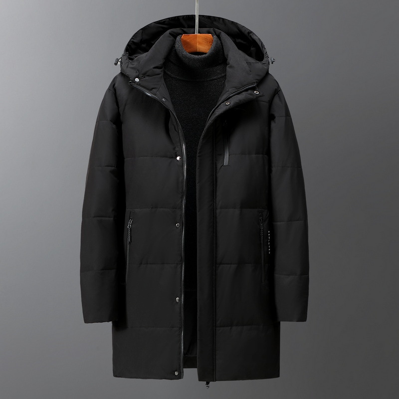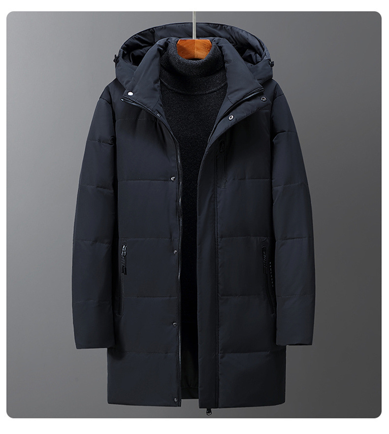 Down jacket men's medium long thick dad 90 white duck down down jacket men hooded winter workwear