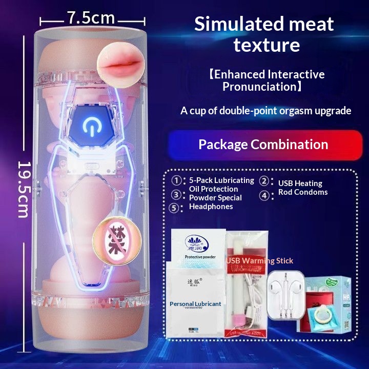 Dual-hole fully automatic telescopic airplane cup toy, hands-free, intelligent, multifunctional, heated, interactive adult sex toy