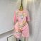 Women's Clothing Fashion Suit Butterfly Diamond Short Sleeved T Shirt Top Elastic Waist Wide Leg Shorts Two Piece Suit