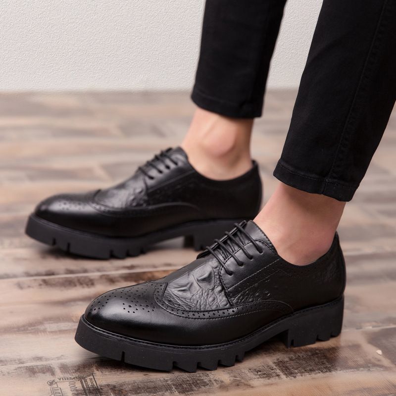 Euro Step 2025 Spring New Thick Sole British Brogue Carved Versatile Men's Pointed Leather Shoes Men