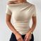 Euroopa ja Ameerika piiriülese sõltumatu jaama kevad-suvi uus õhuke plisseeritud ebaregulaarne lühikeste varrukatega T-särk