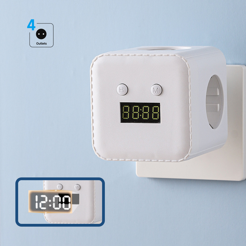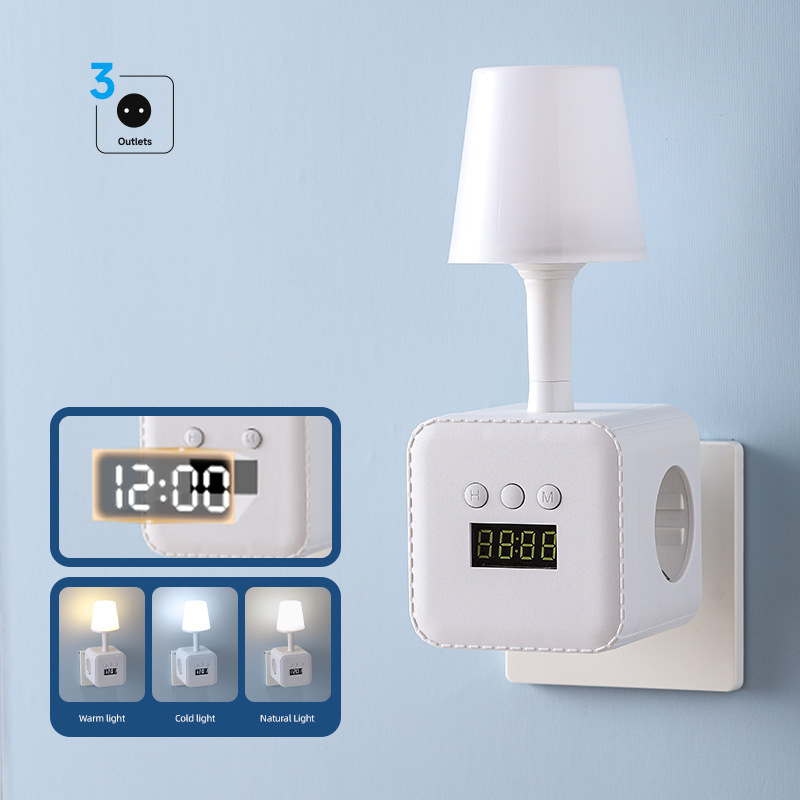 European standard USB cube socket with night light/time display/converter, compact multi-functional power strip for home use
