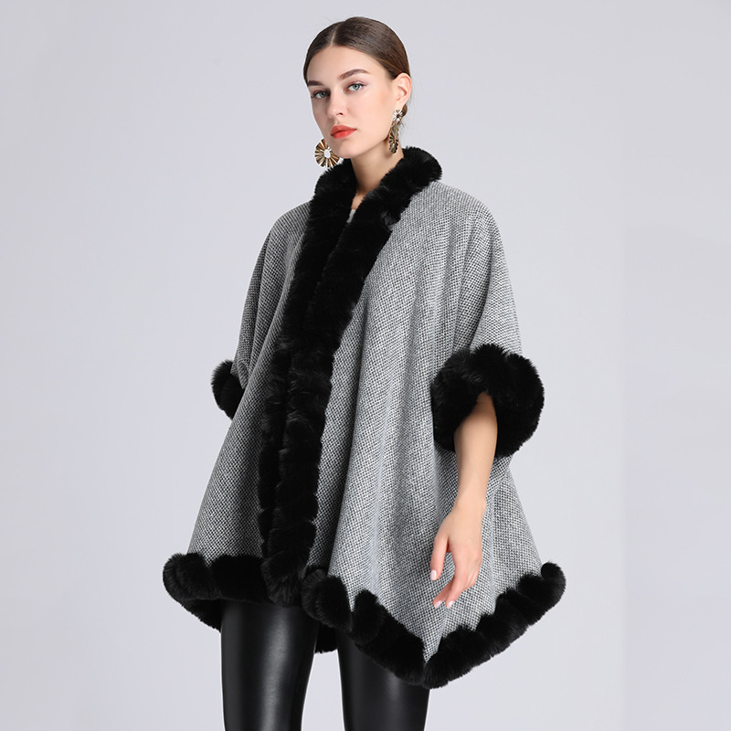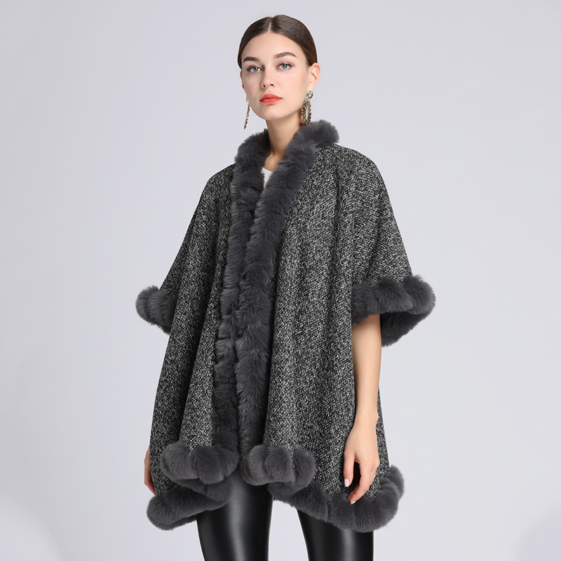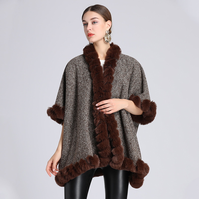 Ekstrafliisist eriti paks karusnahast kraega keeb lahtine suur kootud kardiganmantel naine