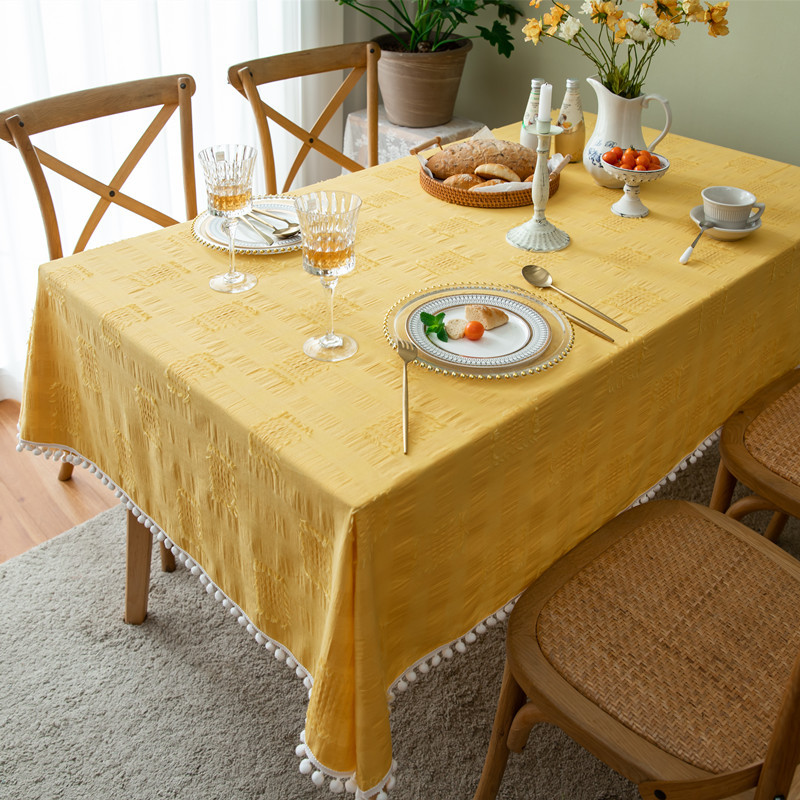 French Romantic Cotton Cut Flower White Pom-Pom Tablecloth Rectangular Coffee Dining Cloth Table Cover