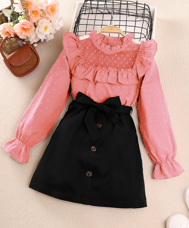 Tüdrukute 2024. aasta kleidikomplekt, uus kevadine pits, täpiline pikkade varrukatega lühike seelik, lasterõivad