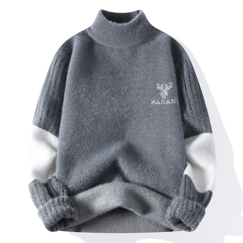 High-end Mink Velvet Sweater Men's Autumn and Winter Fleece-lined Thickened Warm Bottoming Shirt Student Half Turtleneck Knitwear