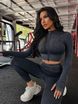 High Waist Seamless Matte Washed Ribbed Tight Yoga Long Sleeve Set Tummy Control Fitness Leggings Training Running