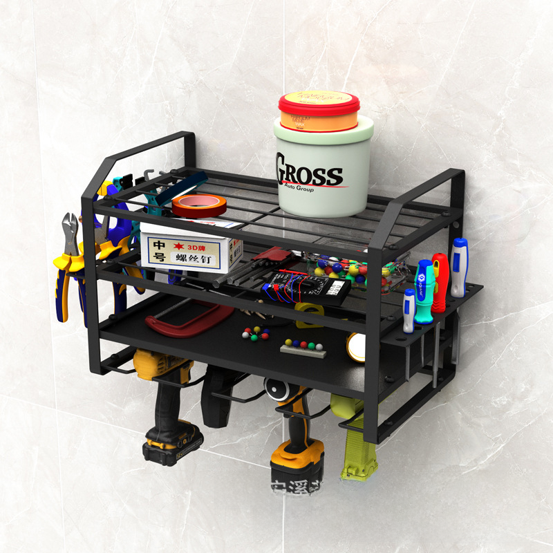 Iron Bohui hand drill rack wall-mounted electric tool rack rechargeable drill storage rack garage tool storage rack