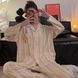 Korean version ins teddy bear couple sleepwear women's collection 2024 Spring and Autumn pure cotton long sleeved striped home suit men's set