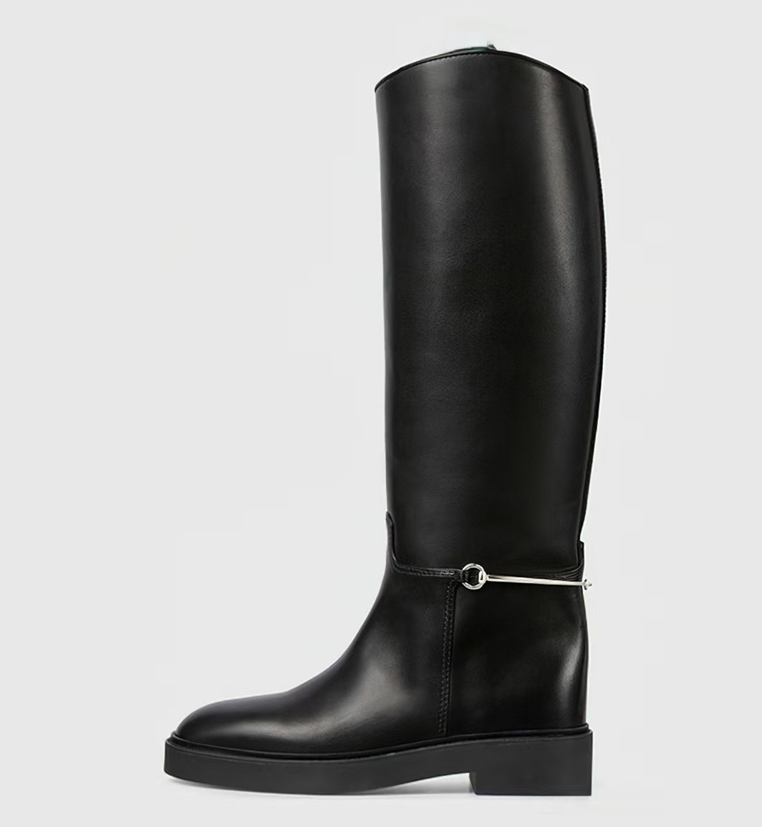 Large size low heel high boots round head autumn and winter new equestrian boots knight boots show flat women's boots