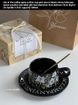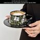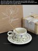An Fan Oil Painting Bell Orchid Blossom Coffee Cup and Plate Handdrawn Latte Cup Set Gift Ceramic Cup