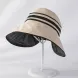 Fashion Summer Black Vinyl Sun Women Stripe Wide Brim UV Protection Bucket Hat Foldable Outdoor Beach Ladies Empty Top Sunscreen_voghion.com