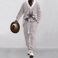 Meeste rõivad 2024 3D-printimisega vabaaja lahtised pikkade varrukatega žakaarmustriga kootud kampsunid, topid ja püksid, meeste ülikond