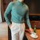 Meeste riided Uus sügisene kootud lühikeste varrukatega poolkõrge kraega T-särk meeste kitsas sisemine topp meeste kampsun alläärega särk