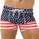 Meeste spordiujumispüksid lameda nurga all tähe- ja triibutrükiga, kiiresti kuivavad ja päikesekaitsevastased ujumispüksid