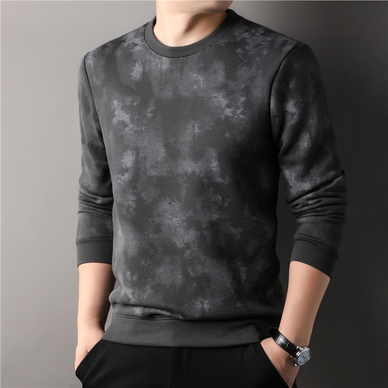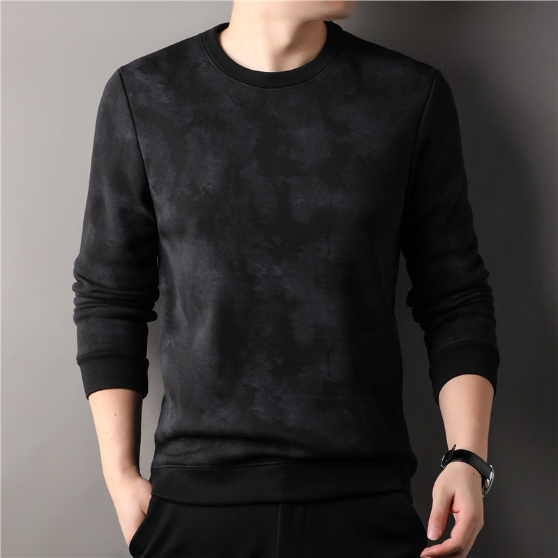 Men's Fleece Hoodie For Autumn And Winter, Simple And Versatile, Loose Round-Neck Thickened T-Shirt For Middle-Aged And