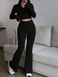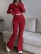 Moodne ühevärviline soonikkoes kaheosaline komplekt lukuga pikkade varrukatega top ja kõrge vöökohaga laienevad püksid naistele vabaajarõivaste jaoks
