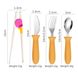 Mother & Kids 304 roostevabast terasest laste noa, kahvel, lusikas ja söögipulgad, 4-osaline silikoonist käepidemega beebi söömislusika treeningpulkade komplekt