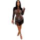 Naiste riided Moodne ja seksikas võrkkivist tutiga pikkade varrukatega kleit