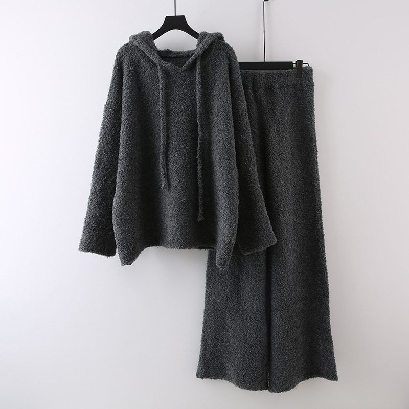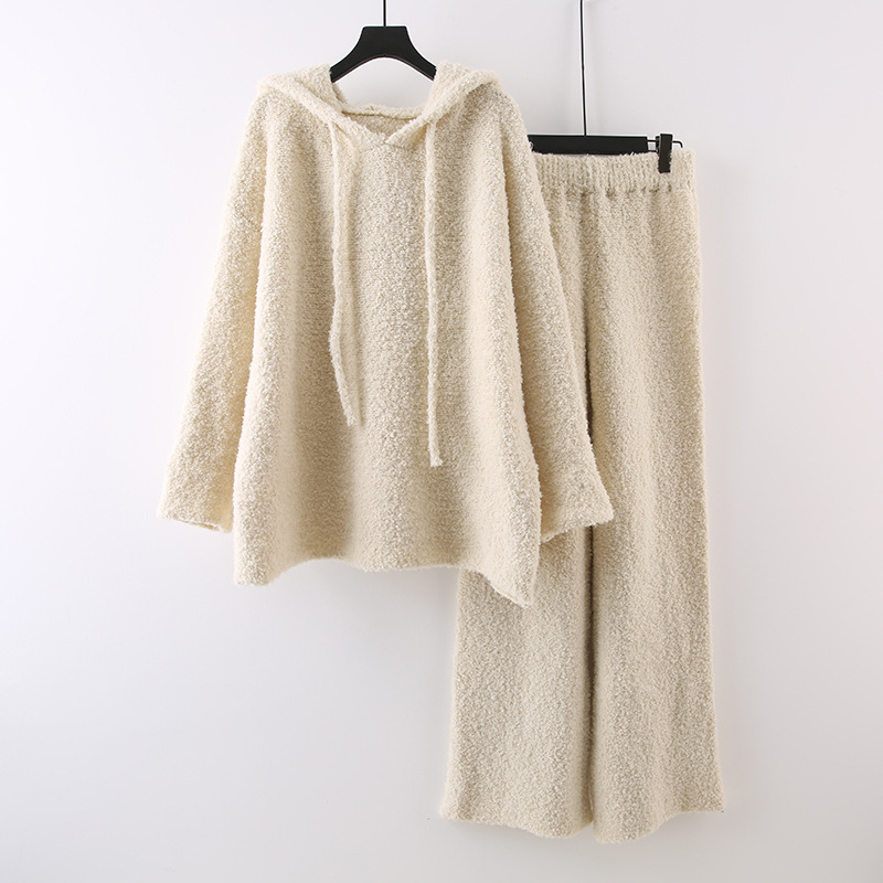 Naisterõivad laisk väike kootud ülikond naistele sügis ja talv Maillard kannab moodne kampsun laia säärega püksid kaheosaline ülikond